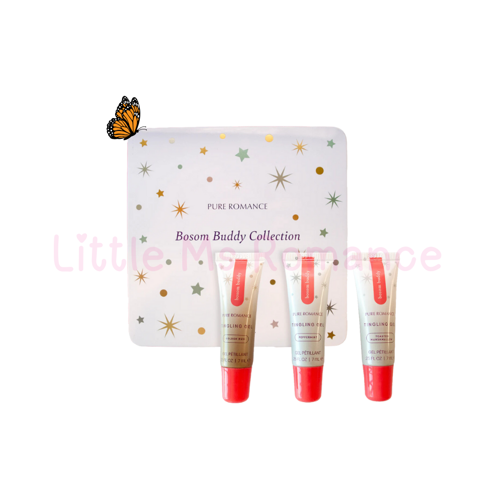 Add a little fun to foreplay with our signature Bosom Buddy formula reimagined as a kissable gel! This collection features limited-edition flavors including Peppermint, Toasted Marshmallow, and Golden Rum. Moisturizing ingredients and mouthwatering flavors make Bosom Buddy perfect for your skin and your taste buds. Use these kissable gels on your nipples (or lips!) and invite your partner to have a taste.