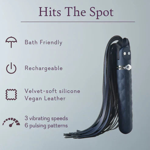 Get as wild as you like with a vibe and whip combo that's sure to hit the spot. Please with the vibrating shaft, then tease with the tassels. This dual-ended, dual-pleasure toy features 3 speeds and 6 vibrating patterns in the handle and vegan leather strips.