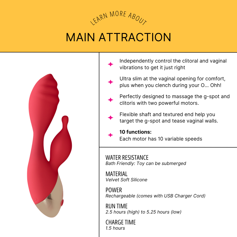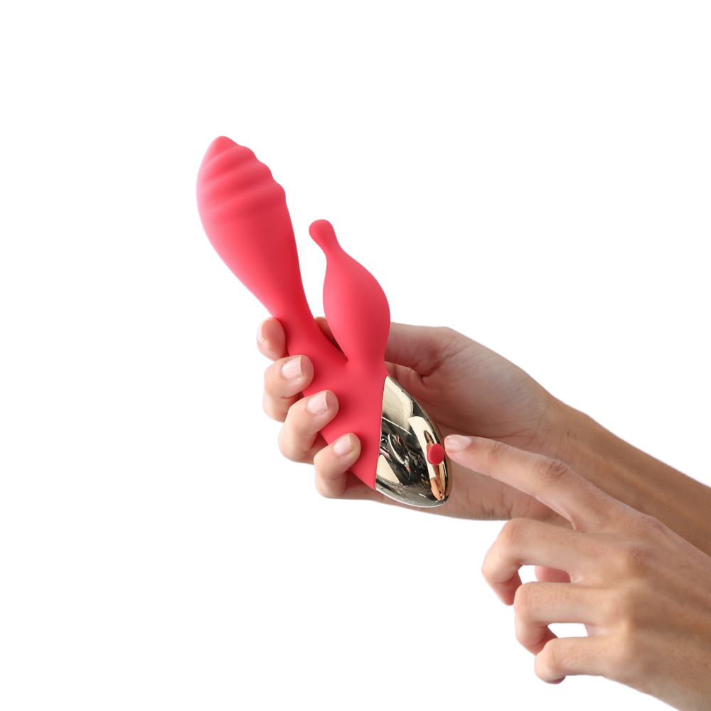 This silicone dual-action vibrator directs your pleasure with 20 speeds and pulsing patterns of independently controlled clitoral and shaft vibration for a completely customized pleasure experience. The shaft's ridged tip massages your G-spot while the tapered clitoral massager delivers exactly what you need.