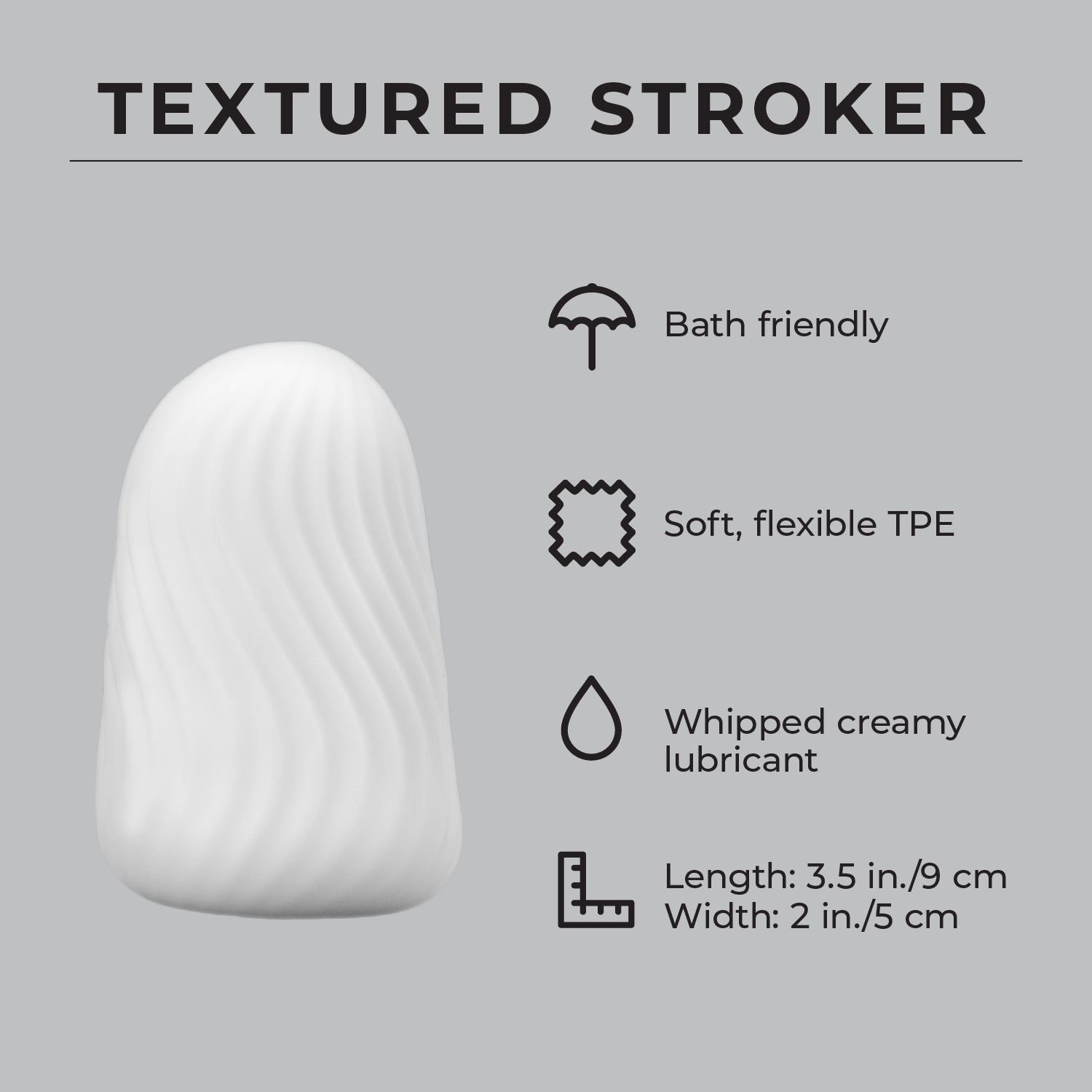 Looking for a way to enhance your next solo session? Look no further than the Textured Stroker. This compact masturbator is made from super soft and flexible TPE and features rows of ripples, nubs, and bands that stimulate with every stroke. It also includes a smartly-designed carry case that not only makes it perfect for travel, but doubles as a drying stand – so you’re always ready to go.